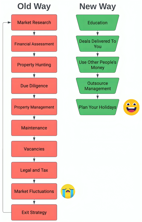 We achieve this by leveraging proven investment strategies, optimizing your portfolio for both cash flow and capital growth, and utilizing innovative risk management techniques without relying on speculative market timing, taking on excessive debt, or sacrificing your personal time and peace of mind.